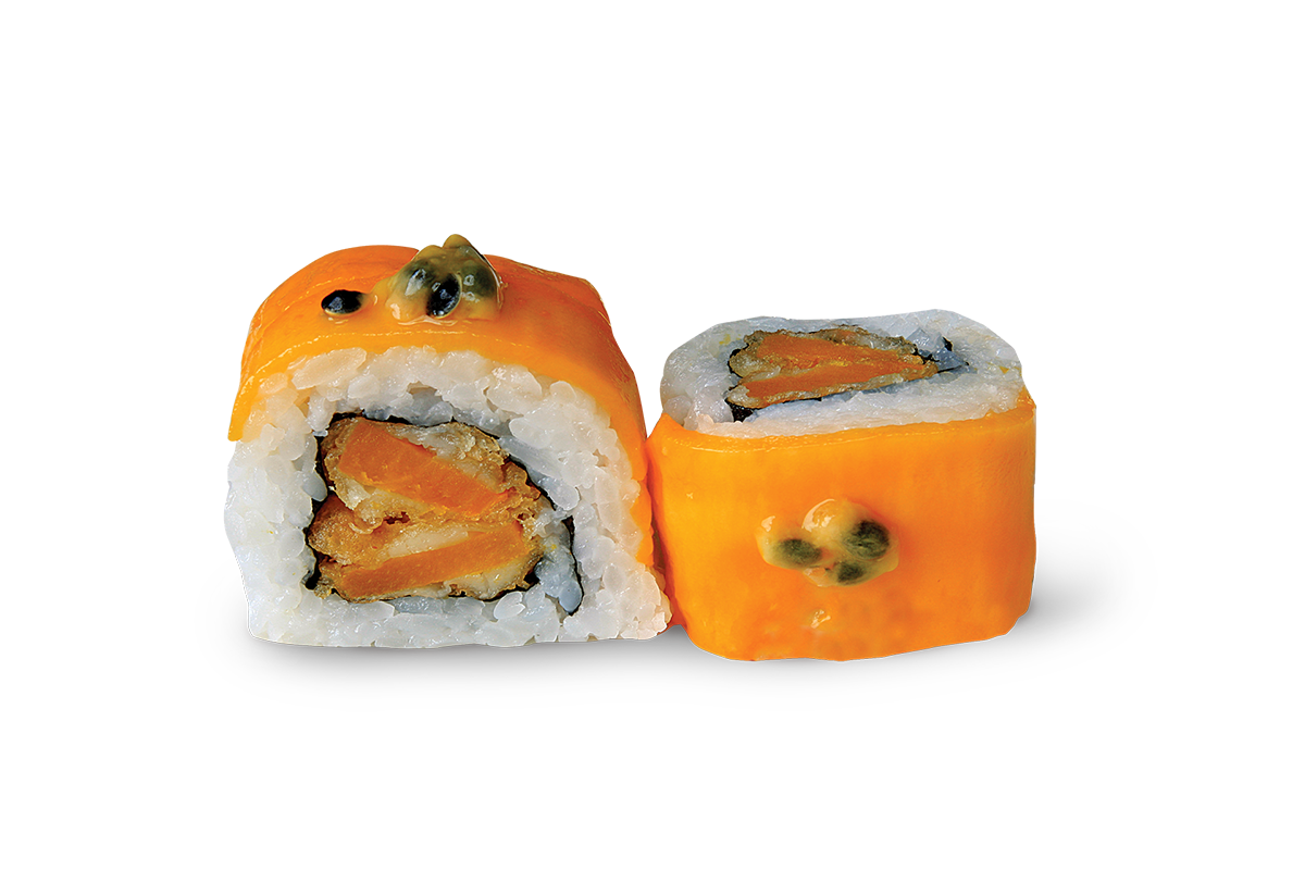 tempura di zucca avvolto da mango e passion fruit (4pz)
